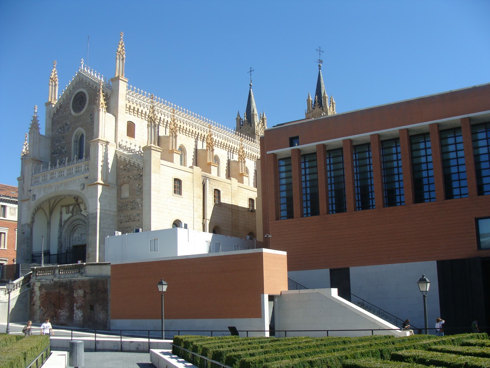 Al despedirnos, las puertas enormes de Cristina Iglesias hechas en bronce semejando ramas, nos abren camino hacia el exterior y permiten la vuelta a la realidad. Antes de marcharnos, merece la pena contemplar el edificio desde fuera, que aunque moderno, es de ladrillo como la fachada de la Iglesia de los Jerónimos y parece de algún modo una continuación de la misma. Un poco más allá, un pequeño jardín de setos verdes guía nuestra vista hacia las copas de los árboles de uno de los principales pulmones de Madrid: el Real Jardín Botánico.